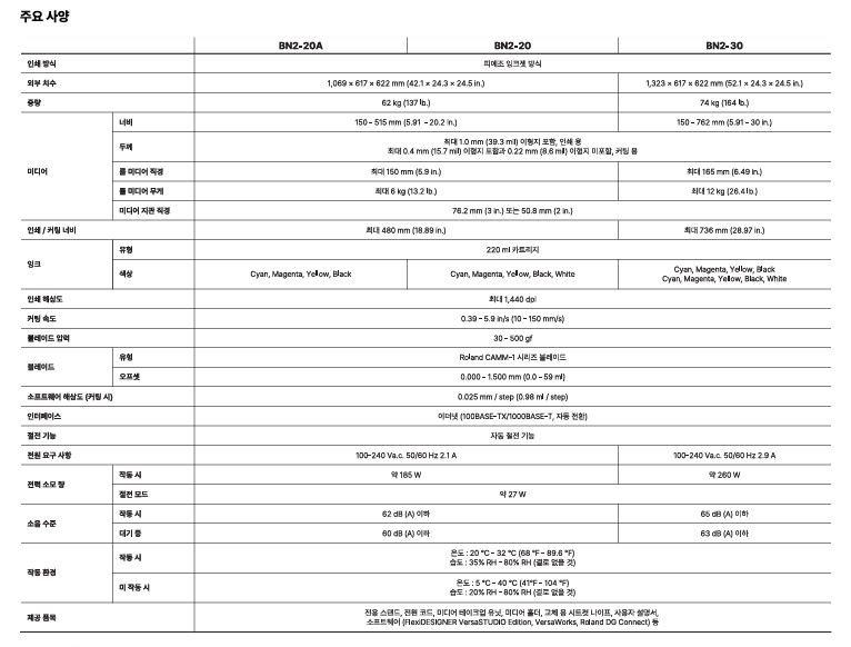 4색 (C ,M ,Y, K) 5색 (C ,M ,Y , K + WH) VersaWorks 7 와 Roland DG Connect 앱으로 컴팩트한 데스크탑 Print & cut 프린터를 만나보세요.